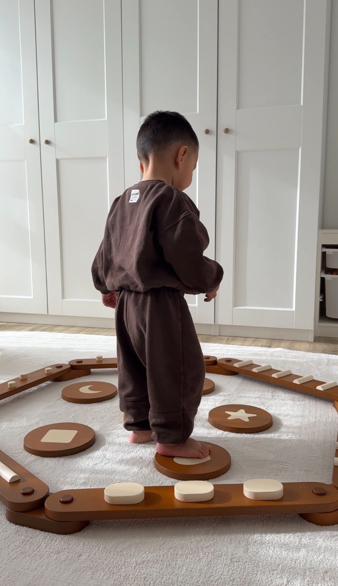 Holzspielzeug und Motorik-Elemente fördern den Bewegungsdrang auf natürliche Weise.
